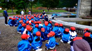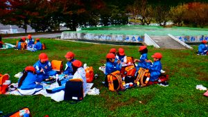 本日、1年生は校外学習に出かけました。行先は、「浅井文化スポーツ公園」です。「秋見つけ」では、たくさんのどんぐりを拾って、秋の自然に親しみ満喫することができました。「遊び場探検」では、ローラー滑り台・巨大遊具などで楽しく遊ぶことができました。めあてと約束を守り、安全に気をつけて無事に校外学習を終えることができました。