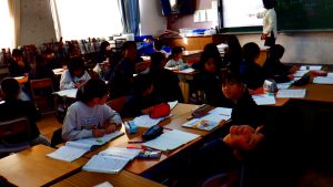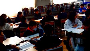 4年生は、算数科の時間、分数のたし算とひき算を学習しました。まず、1人学習に取り組み、テープ図を使って計算の仕方を考えました。次にペア学習になり、考え方を共有しました。今日の学習で、分母が同じ分数のたし算やひき算では、分母をそのままにして、分子だけを計算することを学びました。