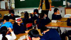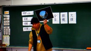 本日、4年生は、総合的な学習の時間「いろいろな人と仲よくしよう」の一環として、長浜市社会福祉協議会の方を招いて、まず、「視覚しょうがい者に対して私たちができることって?」というテーマで学習しました。視覚にしょうがいのある方は、聴覚・触覚・味覚・嗅覚を使ってまわりの情報を得ておられることを知りました。次に、点字ブロックの上に自転車やものを置かない、「何かお手伝いすることはありませんか?」と声をかけるなど私たちができることを学びました。今日の学習は、人を思いやり大切にしようとする考えをもつ大変よい機会となりました。