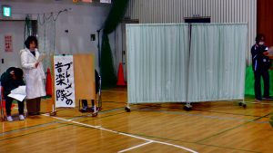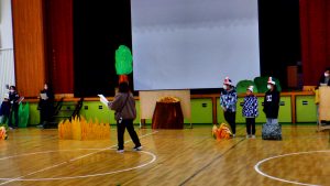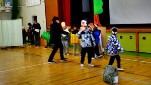 わかば学級の子どもたちは1月8日から毎日、学習発表会の練習を一生懸命しています。本日より、体育館での練習が始まりました。ステージに小道具を置いて準備をし、演劇の練習に入りました。どの子も自分の台詞をしっかりと話して、立派に役を演じました。寒い中での練習、本当によくがんばりました。本番では練習の成果が発揮されるといいですね。
