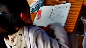 5年生は、算数科の時間、「1時間あたりに進んだ道のりで速さをくらべよう。」というめあてで、速さについて学習しました。問題から速さ=「道のり÷時間」という公式を導き出し、速さには、時速・分速・秒速の3つの表し方があることを学びました。まとめの練習問題は、公式を使って解くことができました。
