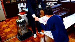 本日、6年生は、「小堀遠州公顕彰会」の方をお招きして茶道体験学習を行いました。まず、各クラスで小堀遠州のお話を聞いた後、図工室に移動し茶会が開かれました。はじめに、挨拶の仕方、お菓子やお茶の頂き方の説明を聞きました。次に、お点前を見学しました。最後に、運ばれてきたお菓子とお茶を作法に従って頂きました。本日の茶道体験学習は、地域の偉人や日本の古典文化にふれることができた貴重な体験になりました。