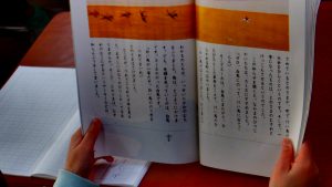2年生は、国語科の時間、「スーホの白い馬」を学習しました。はじめに、CDを聴いてお話の内容をつかみました。次に、心に残った場面をノートに書きました。最後に、感想を話し合い、みんなで共有しました。これから、登場人物の言動や様子を読み取る学習をします。