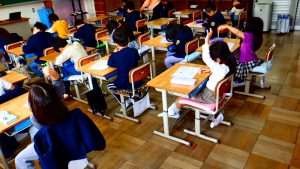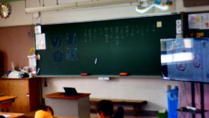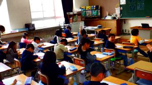 1年生は、国語科の時間、ひらがなの学習をしました。まず、お手本を見ながら自分の名前をていねいに書く練習をしました。次に、「り」の文字を学びました。書き方で気をつけるところや「り」のつく言葉を考え、ワークシートにのびのびと書きました。少しずつ、学校生活に慣れてきた1年生。これから、いろいろな体験を通して知識を身につけていきます。
