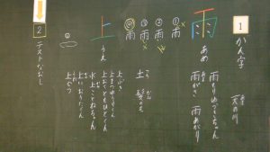 1年生は、2校時の国語の時間に新出漢字を学習しました。はじめに、書き順や読み方を知りました。次に、その漢字を使った言葉や文を考え、発表しました。最後に漢字ドリルで練習をしました。新しい漢字をどんどん覚え、文を読んだり書いたりすることに自信をつけてきた1年生です。