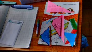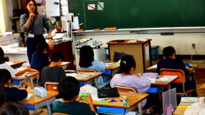 2年生は、算数科の時間、長方形や正方形の対角線を切ってできる三角形について学習しました。一人ひとりがはさみを上手に使い、静かに活動に取り組みました。かどの形を調べてみると、どの三角形にも直角が1つずつあることに気づくことができました。今日の学習で、1つのかどが直角になっている三角形を直角三角形ということを学びました。