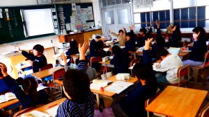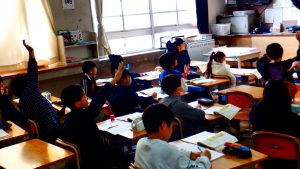 3年生は、国語科の時間、三年とうげを学習しました。まず、物語の組み立てを考えながら、全文を音読しました。次に、班になって、どのような組み立てになっているか話し合いました。最後に、この話が①始まり②出来事が起きる。③出来事が変化する。④結び(出来事が解決する。)の組み立てになっていることを全員で確かめました。