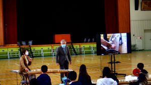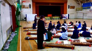 本日5年生は、伝統文化事業の一環として、「やよい会」の方をお招きして琴体験学習を行いました。まず、琴の各部の名称、調弦の仕方、座り方、爪の付け方を知りました。そして、親指の爪をしっかり弦に当てて、指で直接押すような感じで、一音一音はっきりと弾いてみました。次に上体の力をぬいて、手首をやわやかく動かすことを心がけながら「さくら」を弾く練習をしました。日本の伝統楽器の琴のよさにふれることのできた貴重な体験学習になりました。