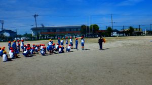 本日2校時、5年生は、学年体育の時間に50m走の測定をしました。まず、下半身のストレッチを中心に準備体操をしました。次に、真っ直ぐ前を向いて走ること・手をしっかり振ることに気をつけて、ゴールを目指して50mを全力で走りました。記録を縮めることを目標に短距離走の練習をがんばります。