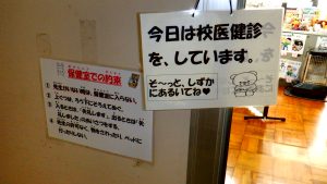 本日、わかば・6年生の内科健診がありました。事前に健診の心構えをよく聞いて健診に臨みました。どの子も校医さんの指示をよく聞いて受診することができました。毎日、楽しく元気に学校生活を送るためにも、「早寝」「早起き」「朝ごはん」を習慣づけたいものですね。