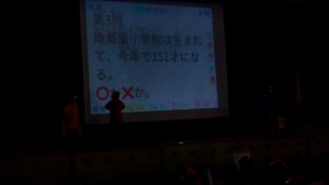 本日2校時に、計画委員が立案した「1年生を迎える会」を行いました。まず、体育館に全校児童が一堂に会し、南郷里マンからの「〇✕クイズ」をしたり、校長先生の話を聞いたりしました。その後、縦割り班になり、各教室に移動しました。6年生が分かりやすく遊び方のルールを伝えた後、班のみんなで楽しく遊びました。1年生は、とてもうれしそうで、どの子も笑顔いっぱいでした。